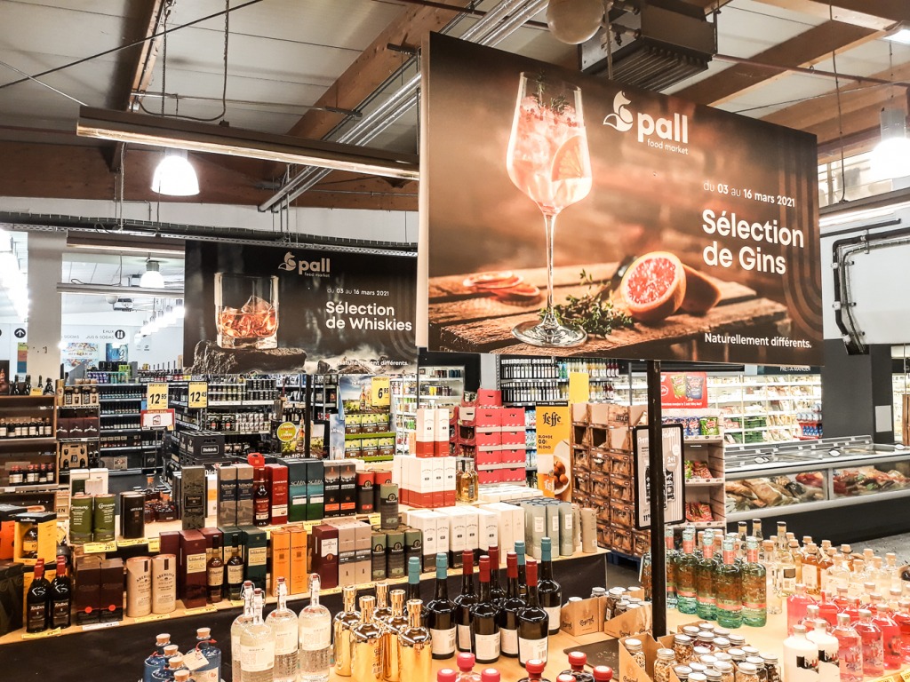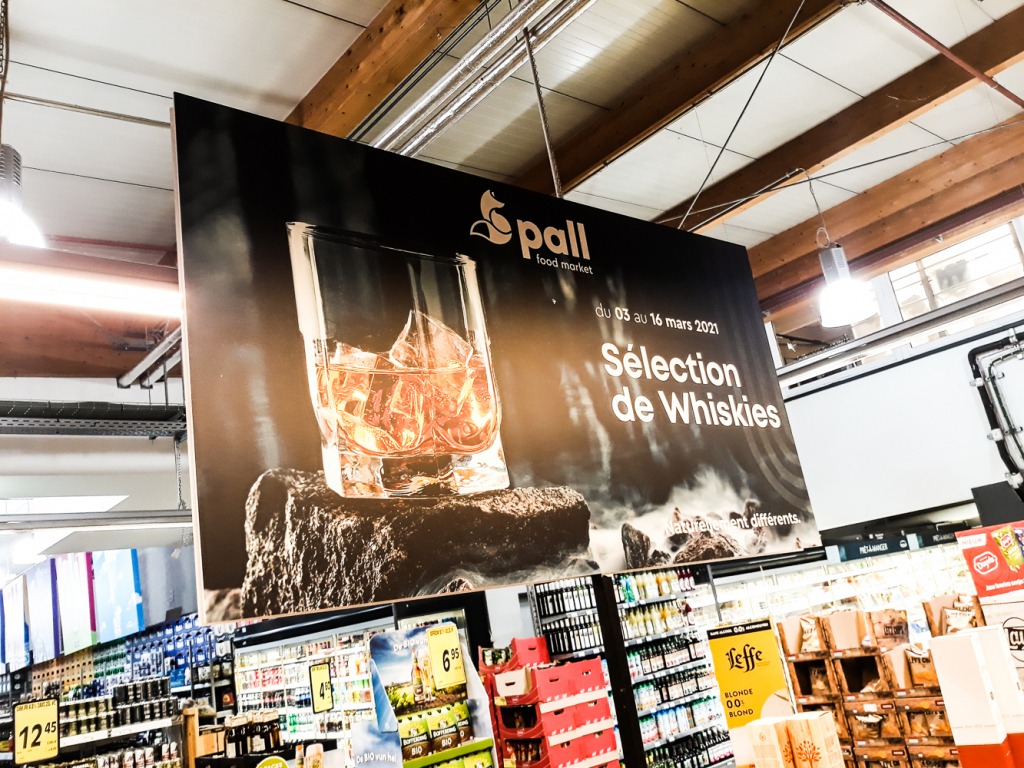 Notre client Pall Center à Oberpallen nous a confié la production de panneaux publicitaires lors de son action Whiskies & Gins.
