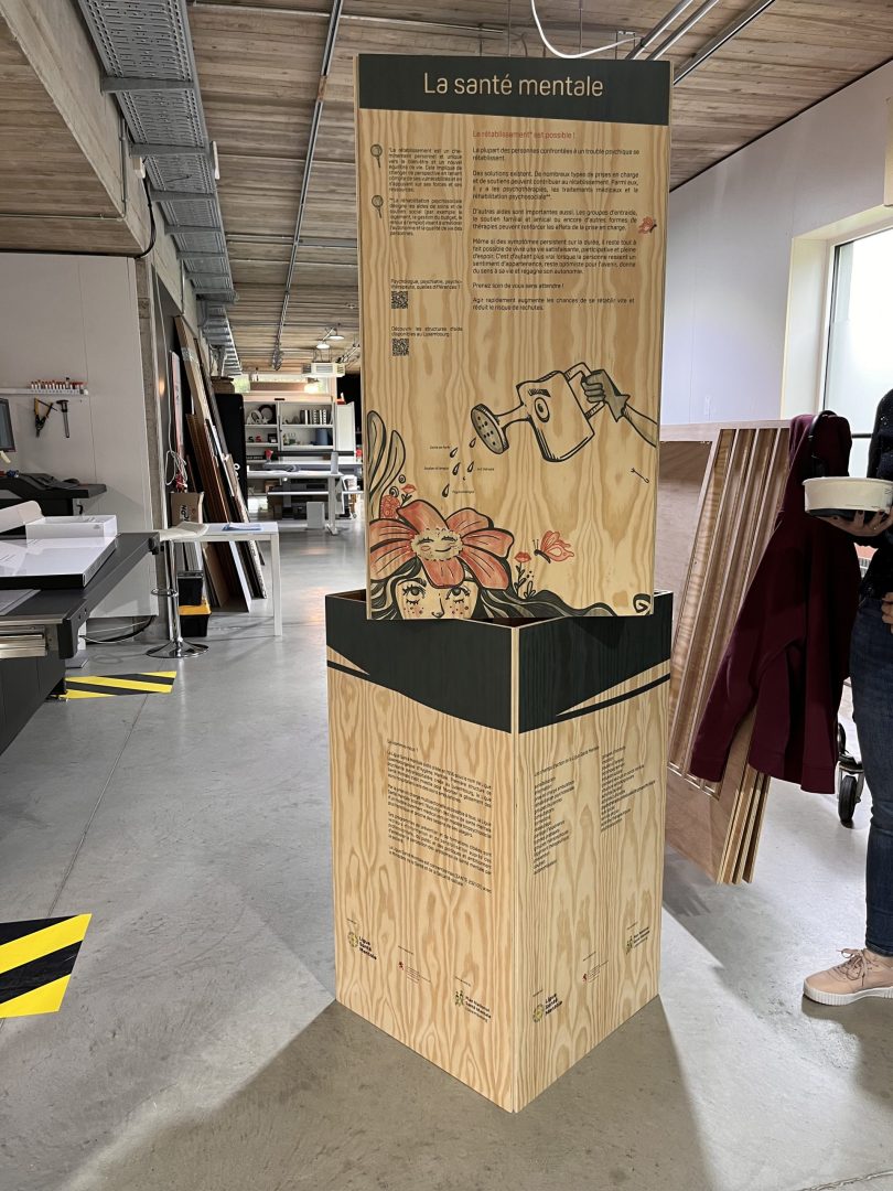 Chez Hello Deco, nous allions design, innovation et respect de l’environnement pour concevoir des supports publicitaires uniques. Pour Indira Creative Studio, nous avons réalisé un projet PLV en bois sur-mesure, dédié à la sensibilisation sur la santé mentale.