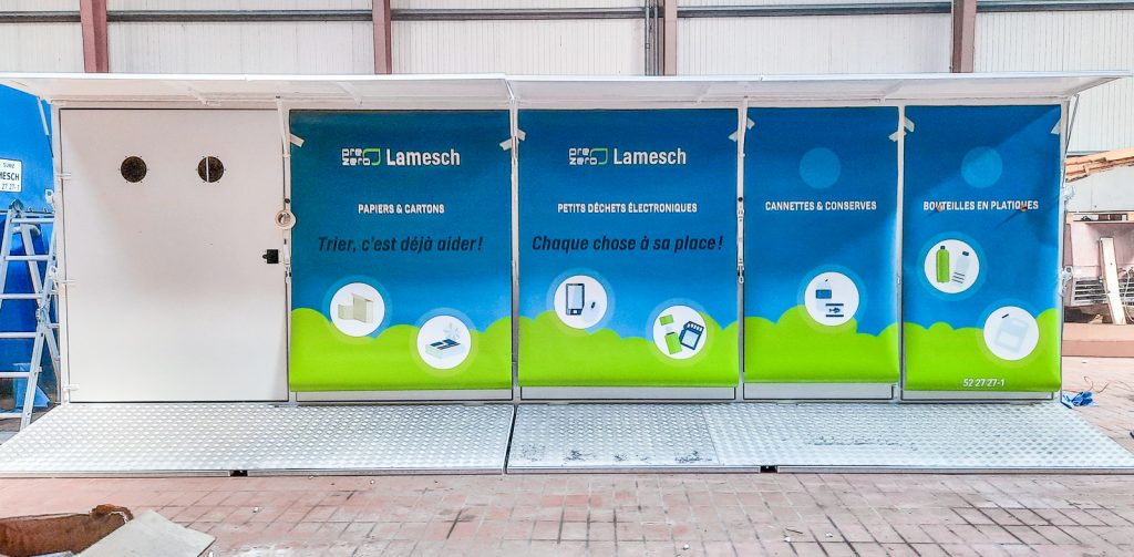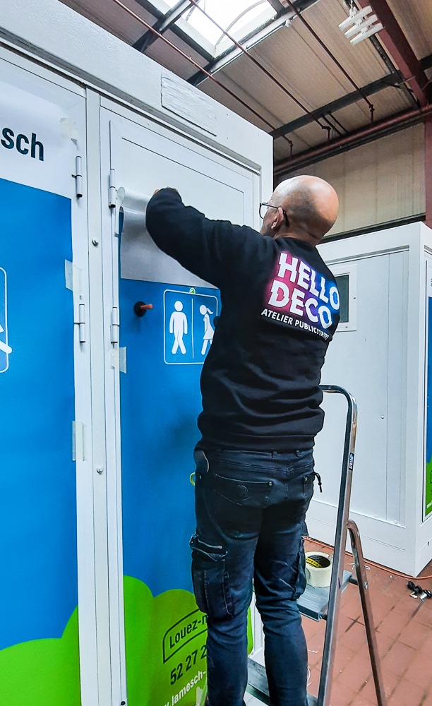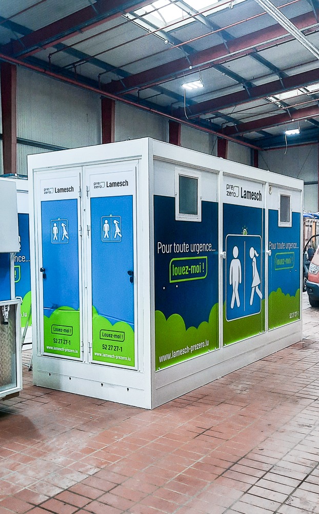 La société luxembourgeoise de gestion des déchets a fait appel à notre atelier publicitaire afin de rafraîchir les lettrages de son micro-parc de recyclage ainsi que de ses modules de sanitaire et toilettes cabines. C’est au sein même de leurs locaux que notre équipe s’est rendue pour la réalisation de ces projets.