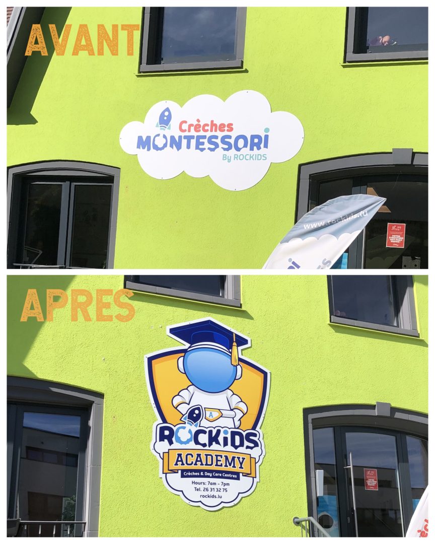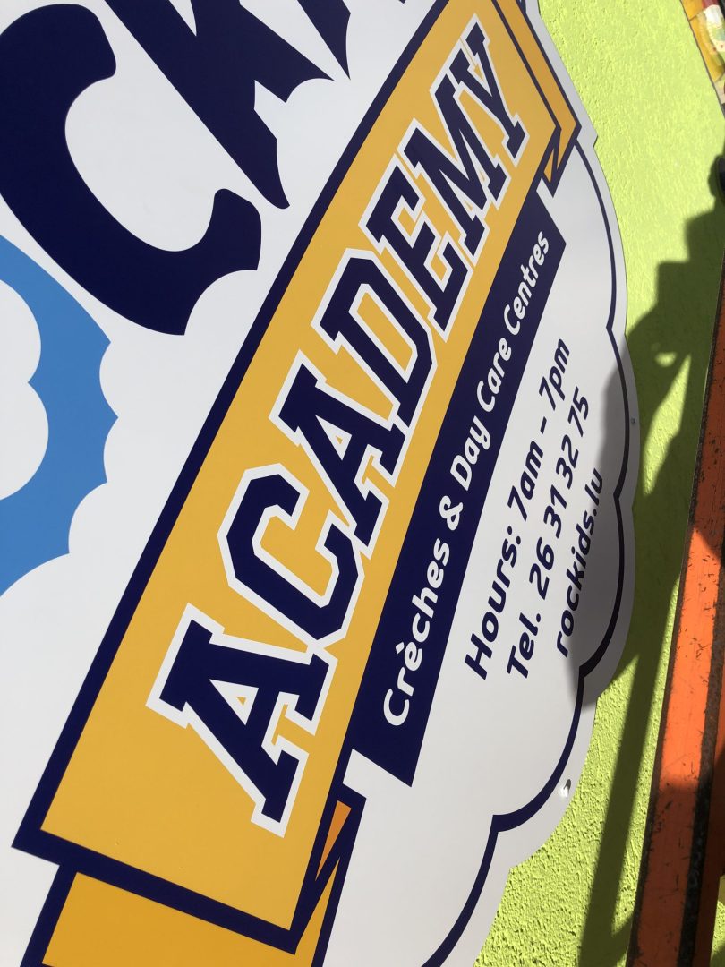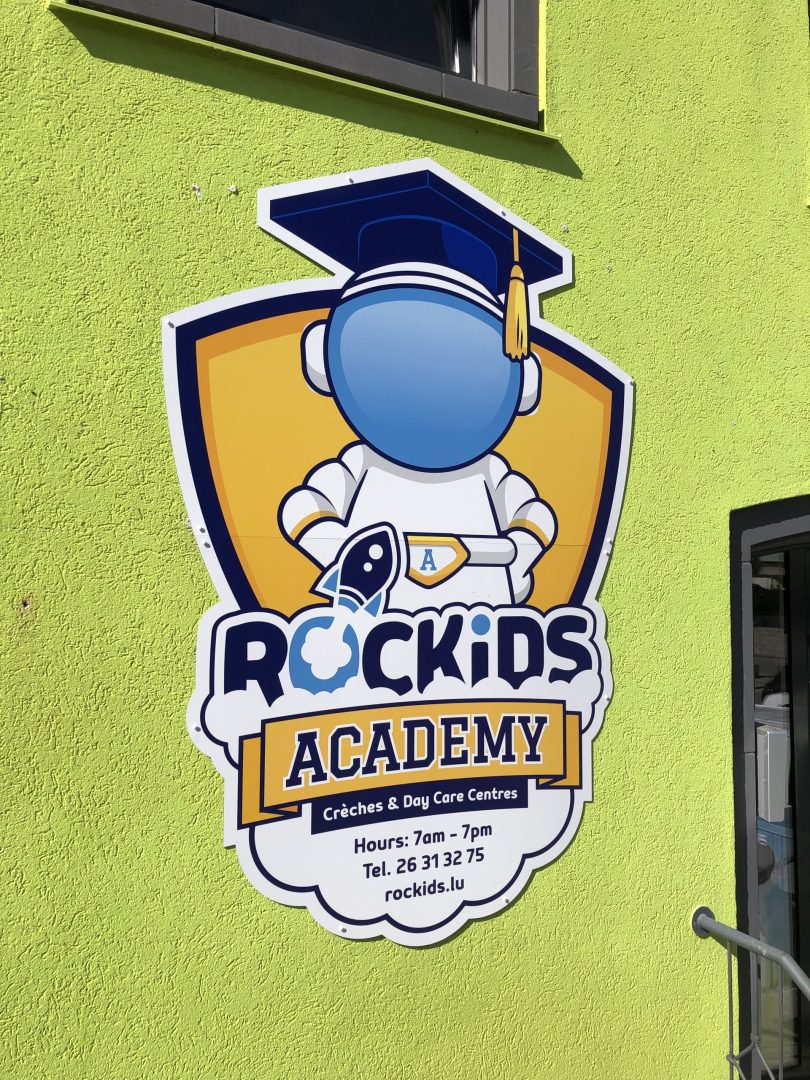 La Rockids Academy ! Un panneau en Dibond, imprimé et fraisé dans notre atelier, et installé à Mamer par notre équipe.