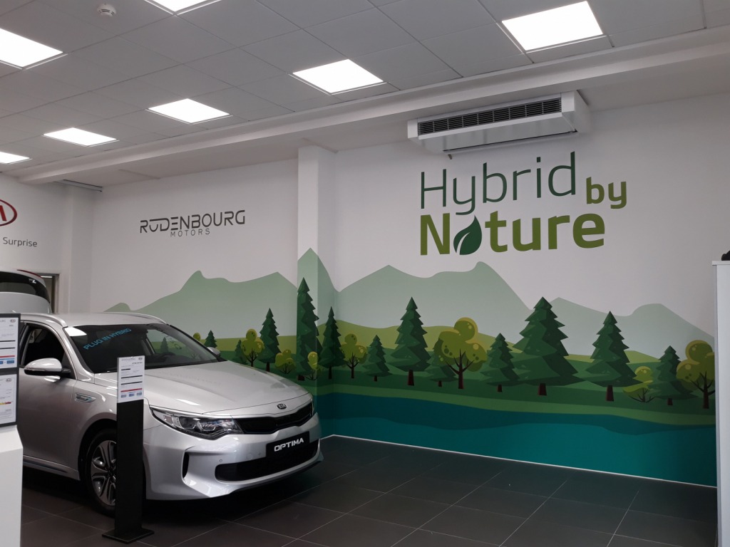 Nous avons travaillé main dans la main avec le client pour un résultat correspondant à ses attentes. Un stickering complet des murs permettant de plonger le prospect dans l’univers du showroom, mais aussi de promouvoir les voitures proposées à la vente.