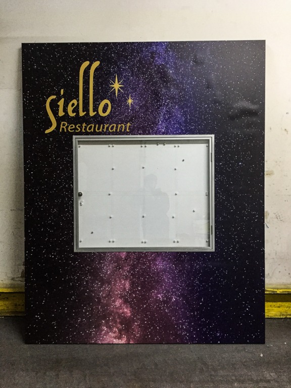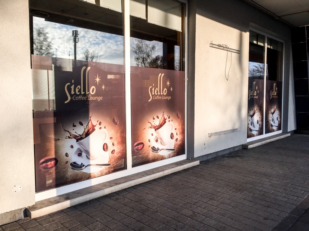 Nous avons posé un micro-perforé sur la vitrine et avons recouvert une ancienne structure aluminium avec un vinyle quadri lamination mat.