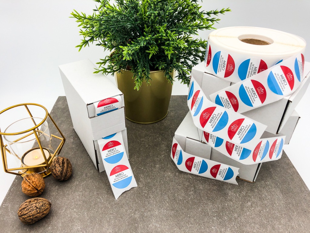 Nous avons produit une série d’étiquettes en rouleau avec impression personnalisée.