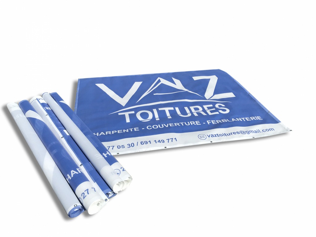 En manque de visibilité, le client a souhaité produire des bâches publicitaires à poser sur son échafaudage !