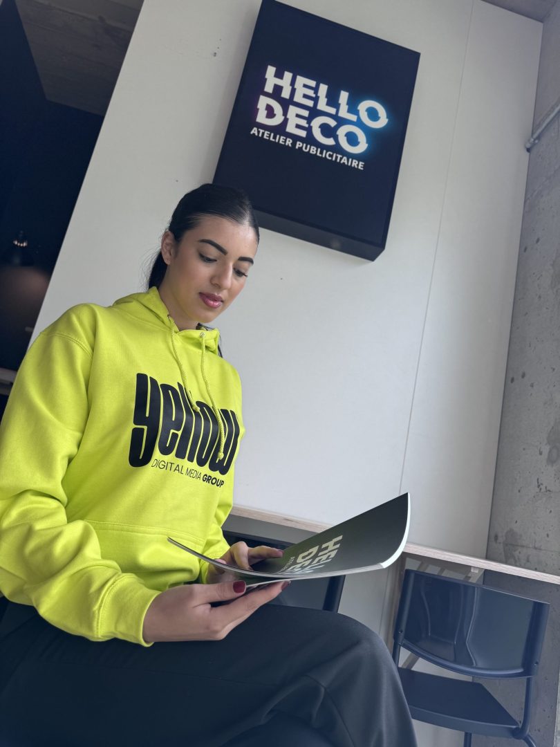 Des hoodies personnalisés pour Yellow Digital Media Group, grâce à l’impression DTF (direct to film) !
